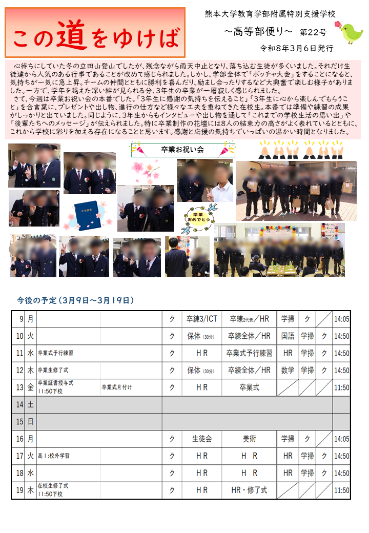 [令和7年度] 学部便り「この道をゆけば」