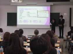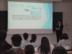 この日、1年間の活動報告が行われました。学生たちは複数の班に分かれて、熊本市内の公民館で子どもたちが生き生きと過ごせるように工夫し活動を展開したことが報告されました。