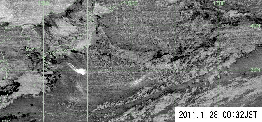 2011年1月27日16時から36時間. 新燃岳上空3800,4000,4200 mより. |